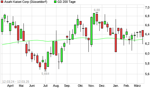 Mit dem Rücksetzer auf 6,27 EUR hat die Asahi Kasei-Aktie am 11.03.2025 die 200-Tage-Linie nach unten gekreuzt.