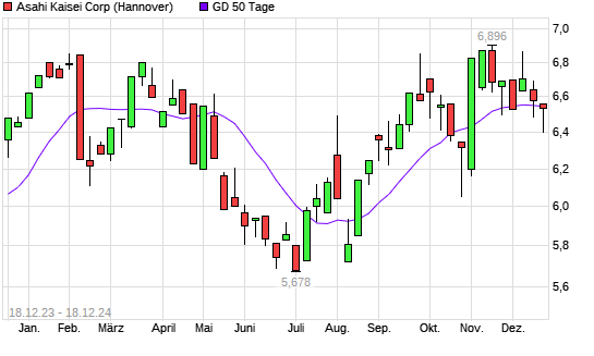Mit dem Rücksetzer auf 6,53 EUR hat die Asahi Kasei-Aktie am 17.12.2024 die 50-Tage-Linie nach unten gekreuzt.