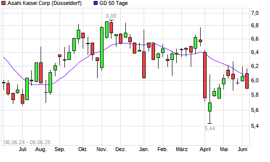 Mit dem Rücksetzer auf 5,96 EUR hat die Asahi Kasei-Aktie am 05.06.2025 die 50-Tage-Linie nach unten gekreuzt.