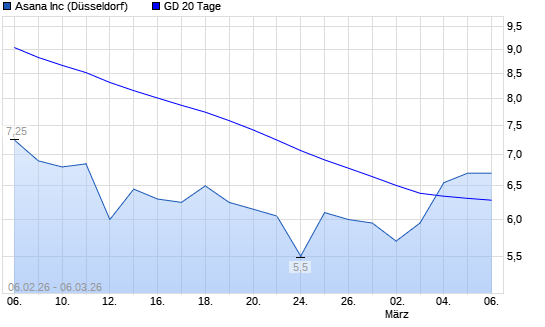 Mit dem Anstieg auf 6,30 EUR hat die Asana-Aktie am 05.03.2026 die 20-Tage-Linie nach oben gekreuzt.