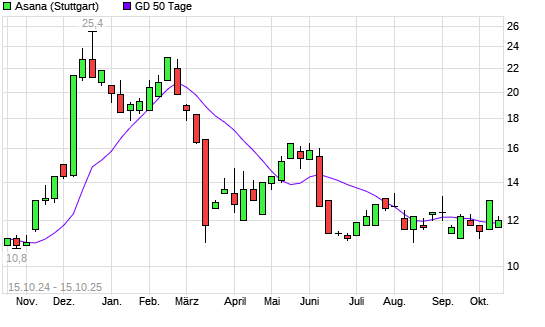Mit dem Anstieg auf 12,00 EUR hat die Asana-Aktie am 14.10.2025 die 50-Tage-Linie nach oben gekreuzt.
