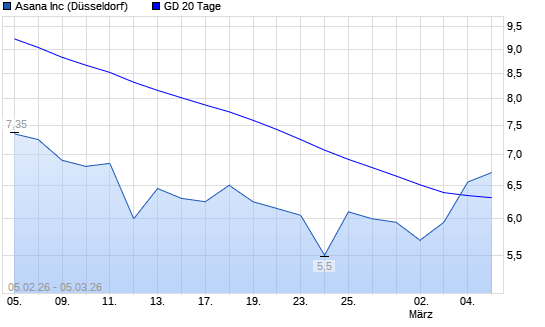 Mit dem Rücksetzer auf 6,05 EUR hat die Asana-Aktie am 04.03.2026 die 20-Tage-Linie nach unten gekreuzt.