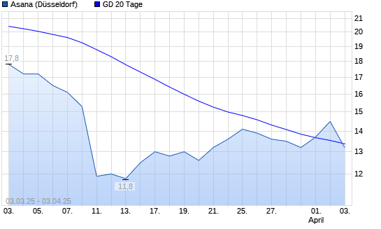 Mit dem Anstieg auf 14,00 EUR hat die Asana-Aktie am 02.04.2025 die 20-Tage-Linie nach oben gekreuzt.Die Asana-Aktie befindet sich seit dem 10.03.2025 im langfristigen Abwärtstrend und hat in ...weiterlesen