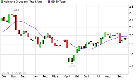 Mit dem Anstieg auf 2,00 EUR hat die Ashmore Group-Aktie am 25.09.2025 die 50-Tage-Linie nach oben gekreuzt.