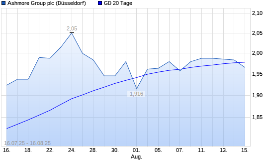 Mit dem Rücksetzer auf 2,00 EUR hat die Ashmore Group-Aktie am 15.08.2025 die 20-Tage-Linie nach unten gekreuzt.