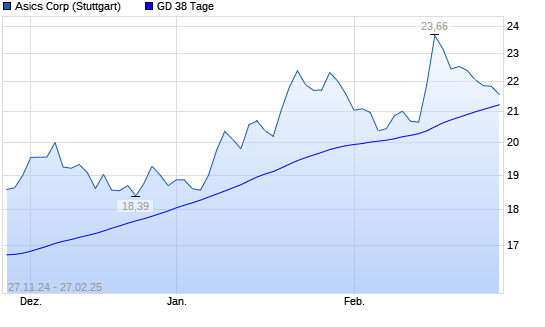 Mit dem Anstieg auf 21,46 EUR hat die Asics-Aktie am 26.02.2025 die 38-Tage-Linie nach oben gekreuzt.