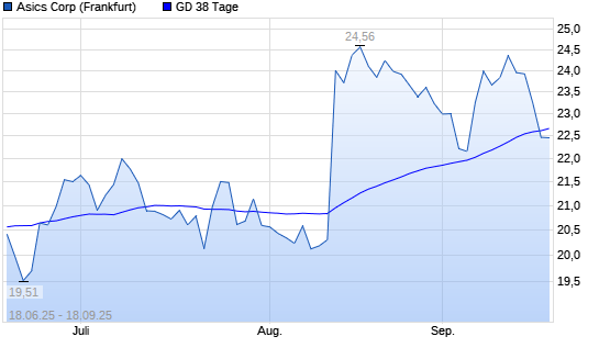 Mit dem Rücksetzer auf 22,47 EUR hat die Asics-Aktie am 17.09.2025 die 38-Tage-Linie nach unten gekreuzt.