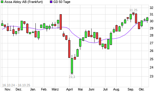 Mit dem Anstieg auf 30,59 EUR hat die Assa Abloy AB B-Aktie am 15.10.2025 die 50-Tage-Linie nach oben gekreuzt.