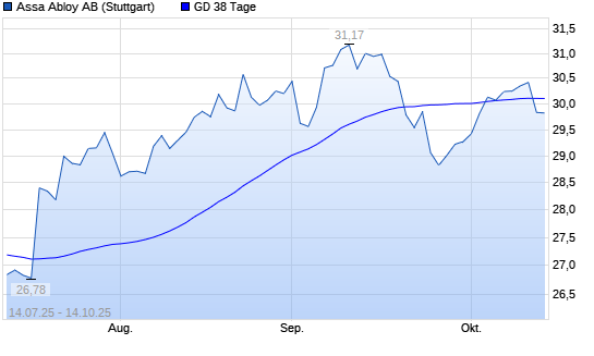 Mit dem Rücksetzer auf 30,04 EUR hat die Assa Abloy AB B-Aktie am 13.10.2025 die 38-Tage-Linie nach unten gekreuzt.