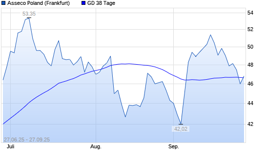 Mit dem Anstieg auf 46,80 EUR hat die Asseco-Aktie am 26.09.2025 die 38-Tage-Linie nach oben gekreuzt.