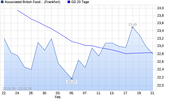 Mit dem Rücksetzer auf 22,80 EUR hat die Associated British Foods-Aktie am 21.02.2025 die 20-Tage-Linie nach unten gekreuzt.