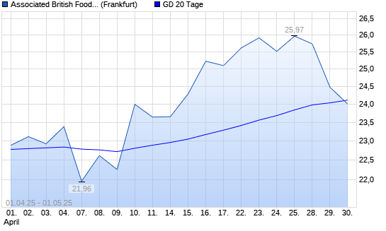 Mit dem Rücksetzer auf 24,01 EUR hat die Associated British Foods-Aktie am 30.04.2025 die 20-Tage-Linie nach unten gekreuzt.