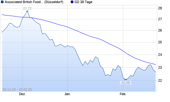 Mit dem Rücksetzer auf 23,29 EUR hat die Associated British Foods-Aktie am 19.02.2025 die 38-Tage-Linie nach unten gekreuzt.