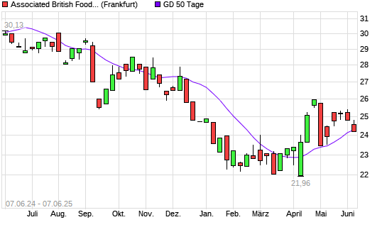Mit dem Rücksetzer auf 24,20 EUR hat die Associated British Foods-Aktie am 06.06.2025 die 50-Tage-Linie nach unten gekreuzt.