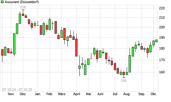 Mit dem Anstieg auf 187,00 EUR hat die Assurant-Aktie (ISIN US04621X1081) am 06.10.2025 ein neues 6-Monats-Hoch erreicht und damit den Kurs vom 29.08.2025 eingestellt.