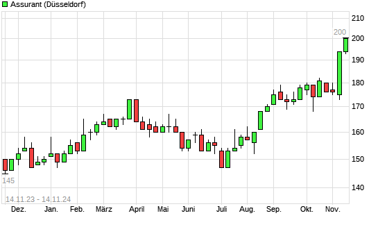 Mit dem Anstieg auf 199,00 EUR hat die Assurant-Aktie (ISIN US04621X1081) am 13.11.2024 ein neues All-Time-High erreicht und damit den Kurs vom 12.11.2024 eingestellt.