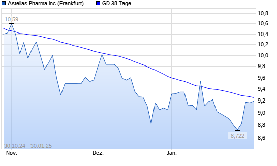 Mit dem Anstieg auf 9,17 EUR hat die Astellas Pharma-Aktie am 29.01.2025 die 38-Tage-Linie nach oben gekreuzt.