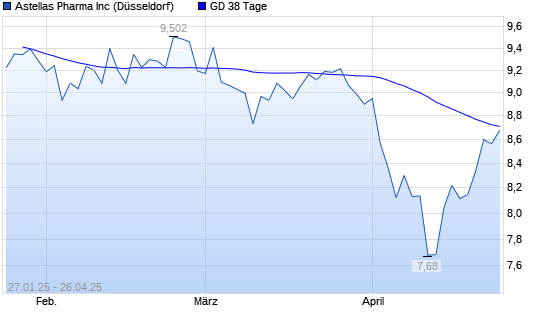 Mit dem Anstieg auf 8,50 EUR hat die Astellas Pharma-Aktie am 25.04.2025 die 38-Tage-Linie nach oben gekreuzt.