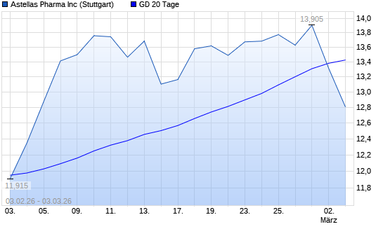 Mit dem Rücksetzer auf 13,20 EUR hat die Astellas Pharma-Aktie am 02.03.2026 die 20-Tage-Linie nach unten gekreuzt.Die Astellas Pharma-Aktie befindet sich seit dem 30.10.2025 ...weiterlesen