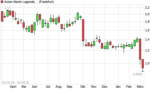 Mit dem Rücksetzer auf 1,02 EUR hat die Aston Martin Lagonda Global Holding-Aktie (ISIN GB00BN7CG237) am 03.03.2025 ein neues All-Time-Low erreicht und damit den Kurs vom 10.10.2022 eingestellt.