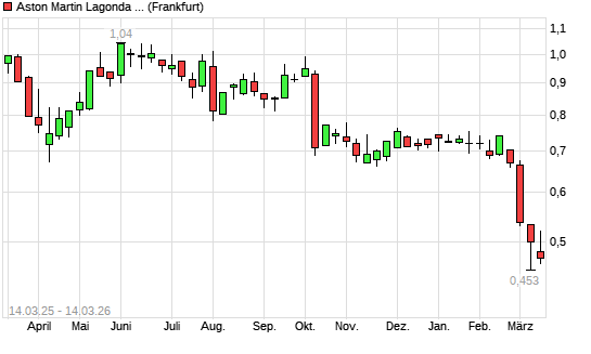 Mit dem Rücksetzer auf 0,47 EUR hat die Aston Martin Lagonda Global Holding-Aktie (ISIN GB00BN7CG237) am 13.03.2026 ein neues All-Time-Low erreicht und damit den Kurs vom 03.03.2026 eingestellt.