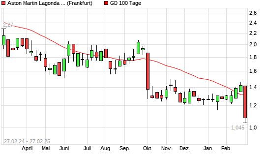 Mit dem Rücksetzer auf 1,21 EUR hat die Aston Martin Lagonda Global Holding-Aktie am 26.02.2025 die 100-Tage-Linie nach unten gekreuzt.