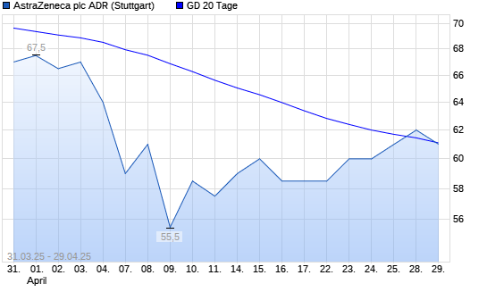 Mit dem Anstieg auf 61,00 EUR hat die Astrazeneca ADR-Aktie am 28.04.2025 die 20-Tage-Linie nach oben gekreuzt.