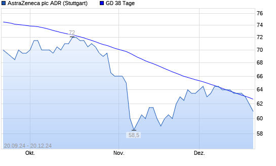 Mit dem Rücksetzer auf 62,00 EUR hat die Astrazeneca ADR-Aktie am 19.12.2024 die 38-Tage-Linie nach unten gekreuzt.