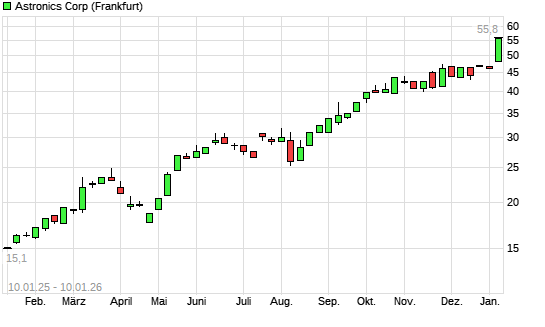 Mit dem Anstieg auf 55,80 EUR hat die Astronics-Aktie (ISIN US0464331083) am 09.01.2026 ein neues All-Time-High erreicht und damit den Kurs vom 07.01.2026 eingestellt.