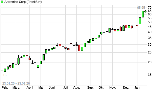 Mit dem Anstieg auf 65,95 EUR hat die Astronics-Aktie (ISIN US0464331083) am 22.01.2026 ein neues All-Time-High erreicht und damit den Kurs vom 16.01.2026 eingestellt.