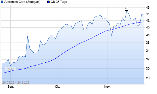 Mit dem Anstieg auf 43,86 EUR hat die Astronics-Aktie am 25.11.2025 die 38-Tage-Linie nach oben gekreuzt.