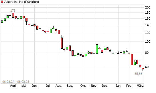 Mit dem Rücksetzer auf 55,56 EUR hat die Atkore-Aktie (ISIN US0476491081) am 05.03.2025 ein neues 3-Jahres-Tief erreicht und damit den Kurs vom 04.03.2025 eingestellt.
