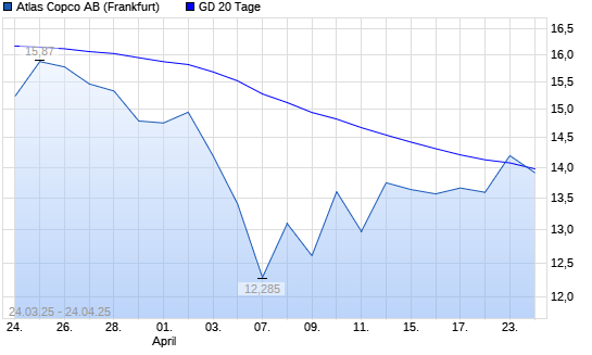 Mit dem Anstieg auf 14,19 EUR hat die Atlas Copco A-Aktie am 23.04.2025 die 20-Tage-Linie nach oben gekreuzt.