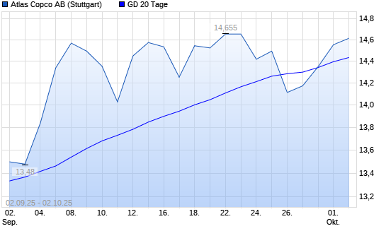 Mit dem Anstieg auf 14,48 EUR hat die Atlas Copco A-Aktie am 01.10.2025 die 20-Tage-Linie nach oben gekreuzt.