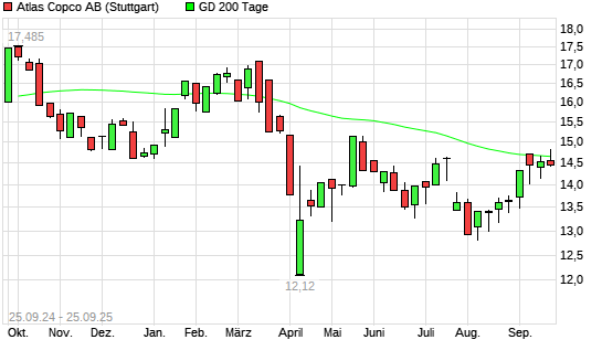 Mit dem Anstieg auf 14,69 EUR hat die Atlas Copco A-Aktie am 24.09.2025 die 200-Tage-Linie nach oben gekreuzt.