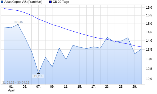 Mit dem Rücksetzer auf 13,28 EUR hat die Atlas Copco A-Aktie am 29.04.2025 die 20-Tage-Linie nach unten gekreuzt.