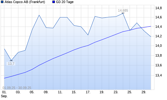 Mit dem Rücksetzer auf 14,31 EUR hat die Atlas Copco A-Aktie am 29.09.2025 die 20-Tage-Linie nach unten gekreuzt.