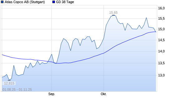 Mit dem Rücksetzer auf 14,78 EUR hat die Atlas Copco A-Aktie am 31.10.2025 die 38-Tage-Linie nach unten gekreuzt.