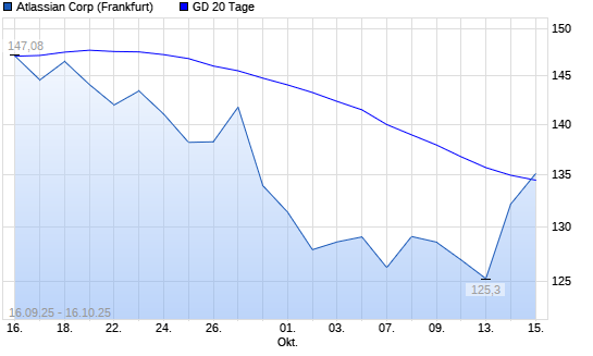 Mit dem Anstieg auf 135,12 EUR hat die Atlassian-Aktie am 15.10.2025 die 20-Tage-Linie nach oben gekreuzt.