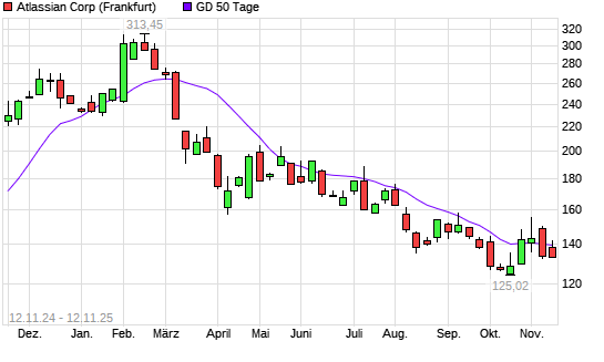 Mit dem Anstieg auf 141,90 EUR hat die Atlassian-Aktie am 11.11.2025 die 50-Tage-Linie nach oben gekreuzt.