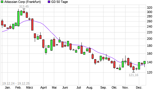 Mit dem Anstieg auf 136,62 EUR hat die Atlassian-Aktie am 18.12.2025 die 50-Tage-Linie nach oben gekreuzt.