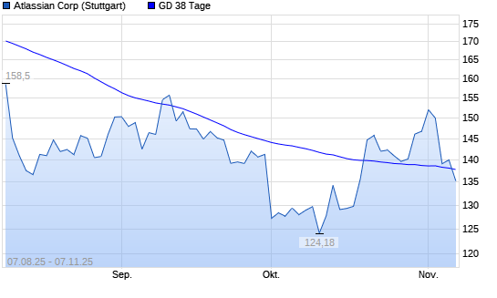 Mit dem Rücksetzer auf 137,40 EUR hat die Atlassian-Aktie am 06.11.2025 die 38-Tage-Linie nach unten gekreuzt.