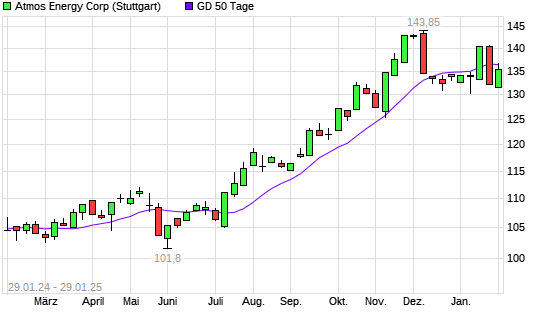 Mit dem Anstieg auf 136,50 EUR hat die Atmos Energy-Aktie am 28.01.2025 die 50-Tage-Linie nach oben gekreuzt.