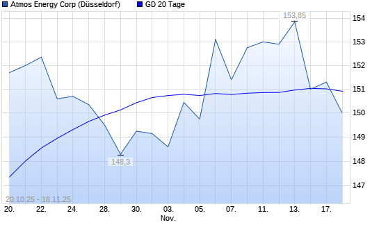 Mit dem Rücksetzer auf 150,70 EUR hat die Atmos Energy-Aktie am 17.11.2025 die 20-Tage-Linie nach unten gekreuzt.