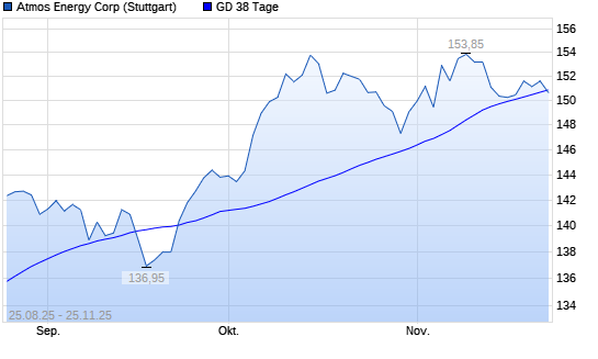 Mit dem Rücksetzer auf 150,65 EUR hat die Atmos Energy-Aktie am 24.11.2025 die 38-Tage-Linie nach unten gekreuzt.