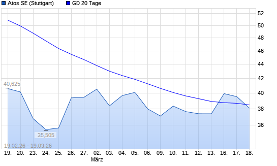 Mit dem Rücksetzer auf 38,09 EUR hat die Atos-Aktie am 18.03.2026 die 20-Tage-Linie nach unten gekreuzt.