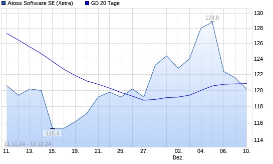 Mit dem Rücksetzer auf 119,60 EUR hat die Atoss Software-Aktie am 09.12.2024 die 20-Tage-Linie nach unten gekreuzt.