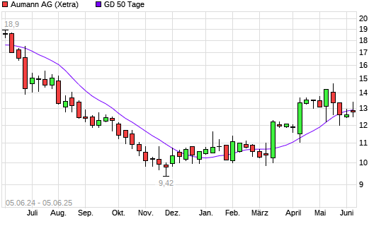 Mit dem Anstieg auf 12,98 EUR hat die Aumann-Aktie am 04.06.2025 die 50-Tage-Linie nach oben gekreuzt.