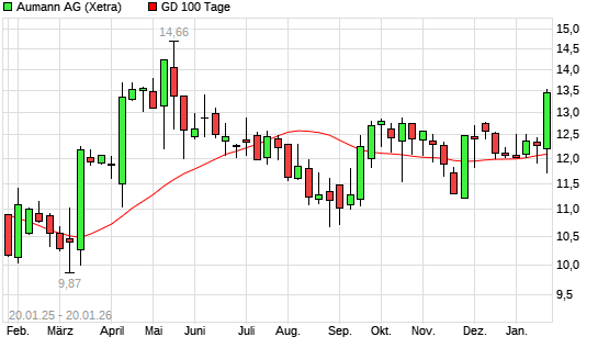 Mit dem Rücksetzer auf 11,88 EUR hat die Aumann-Aktie am 19.01.2026 die 100-Tage-Linie nach unten gekreuzt.