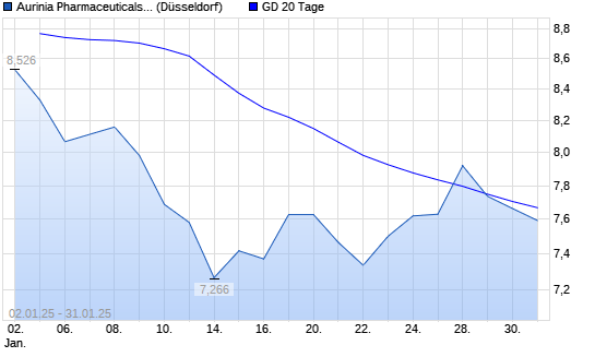 Mit dem Rücksetzer auf 7,63 EUR hat die Aurinia Pharmaceuticals-Aktie am 30.01.2025 die 20-Tage-Linie nach unten gekreuzt.